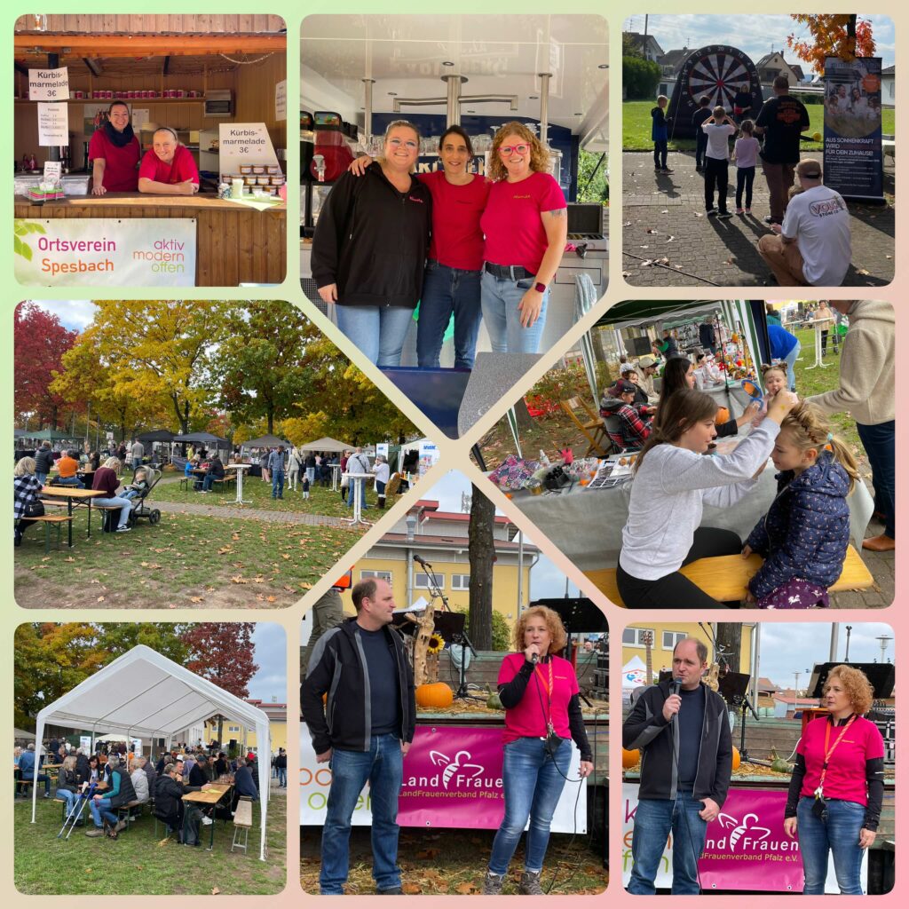 Angefangen hat es 2018 mit 4 Ständen. Und so wuchsen wir von Jahr zu Jahr immer mehr und daraus wurden dieses Jahr 30 Stände. Das Wetter hat wieder sehr gut mitgespielt, der Aufbau lief super und die Besucherzahl war grandios. Eine Sache musste aber schiefgehen. Auf dem Weg zu unserem Fest streikte der Bus von Hinz un?! Kunz und blieb bei Pirmasens liegen. Aber unsere Landfrauen haben ja tolle Männer, die sich mit Hänger auf den Weg zu Hinz un?! Kunz machten und mit Sack und Pack sicher zum Kürbisfest brachten.