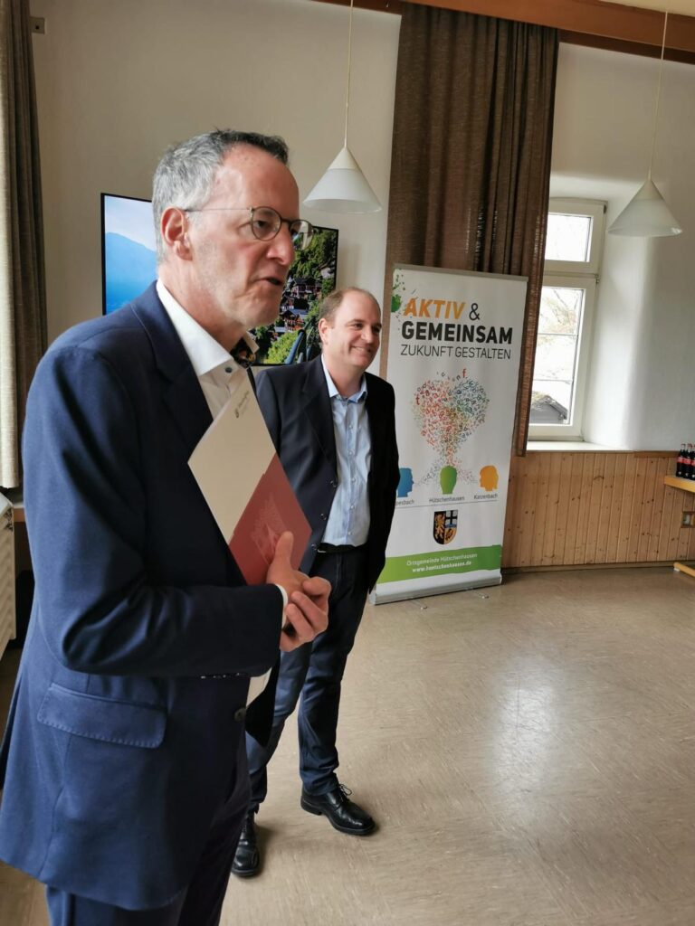 Ortsgemeinde Hütschenhausen empfängt Michael Ebling zur Übergabe des Förderbescheides zur Modernisierung des Dorfgemeinschaftshauses Katzenbach.