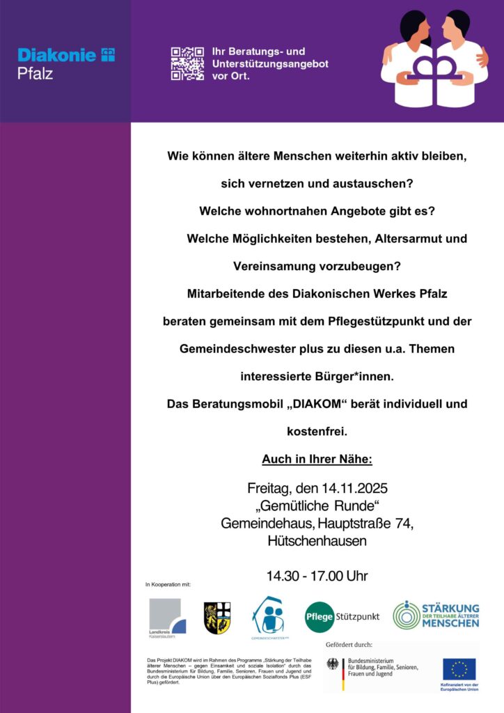 Die nächsten Stationen des mobilen Beratungsangebots DIAKOM sind: