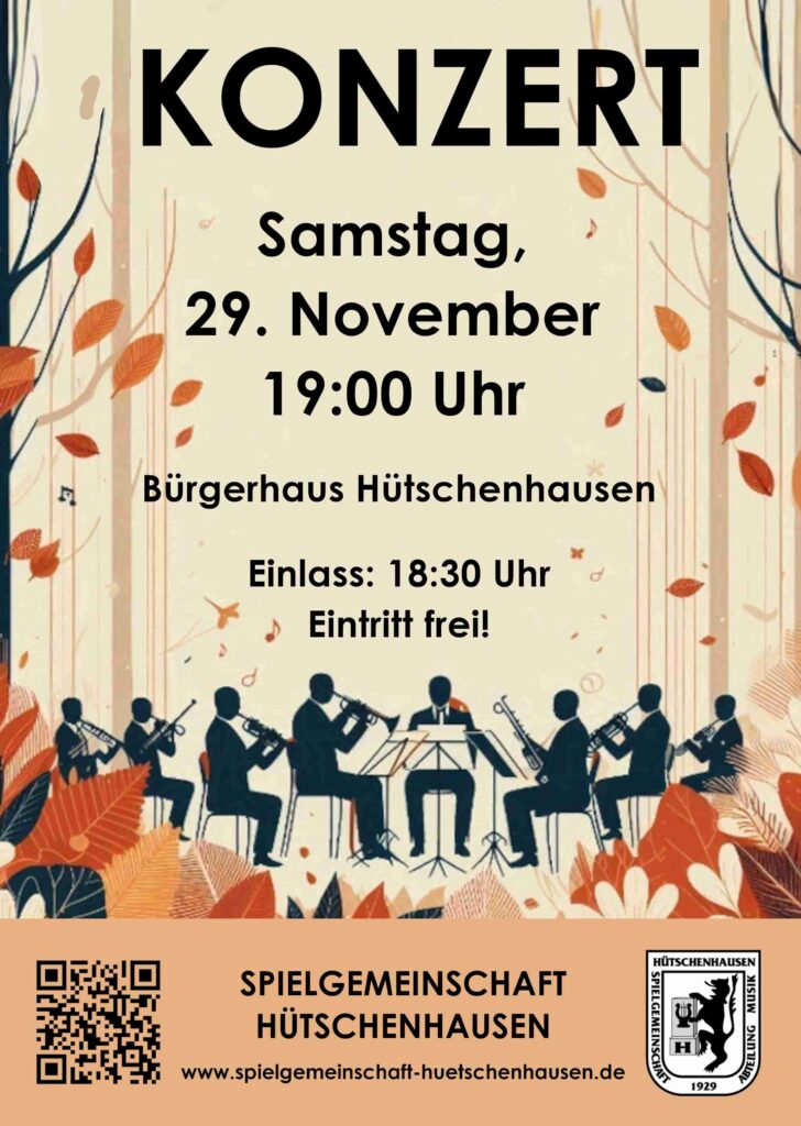 Am Samstag, 29. November um 19:00 Uhr (Einlass ab 18:30) lädt die Spielgemeinschaft Hütschenhausen zu ihrem alljährlichen Herbstkonzert ins Bürgerhaus Hütschenhausen ein.
