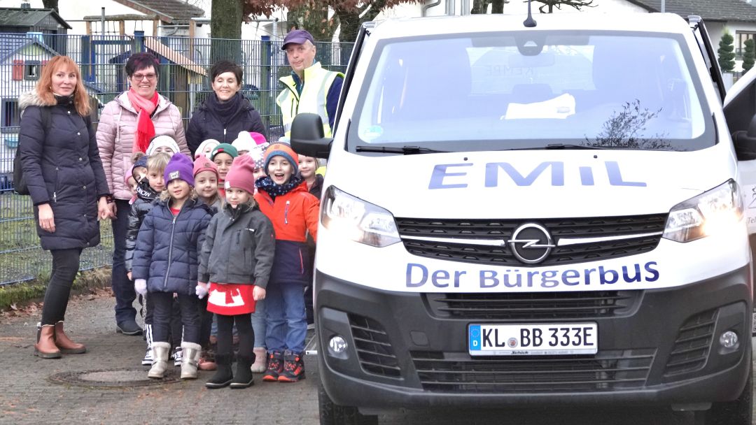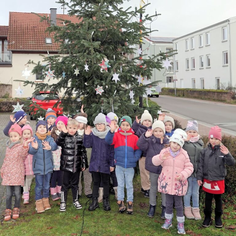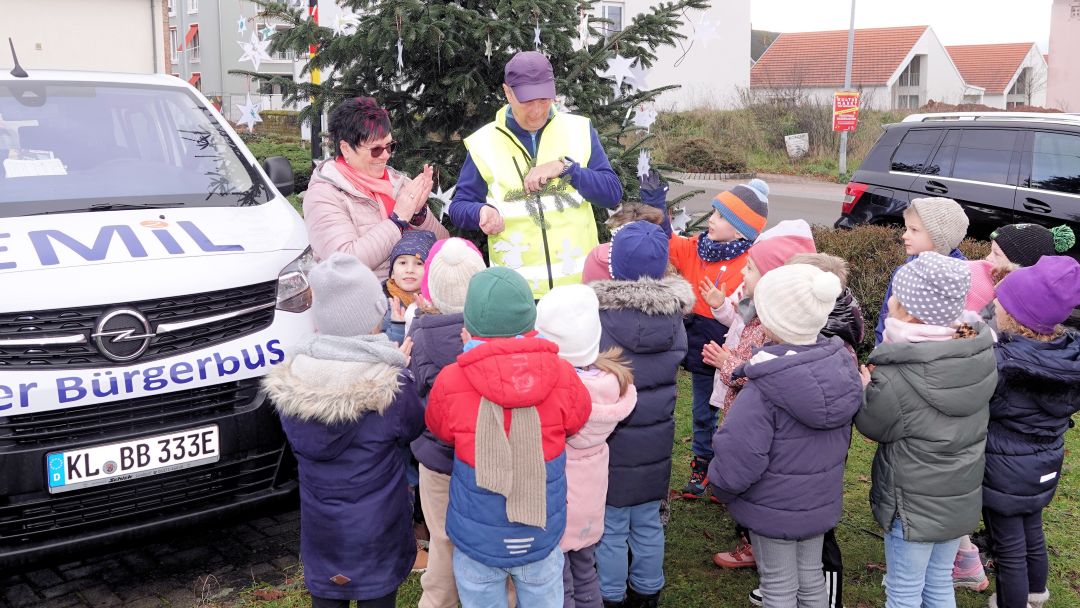 Damit auch der Baum im Ortsteil Hütschenhausen geschmückt werden konnte, der rund zwei Kilometer entfernt steht, half der Bürgerbus EMiL tatkräftig mit: Fahrer Paul Feth brachte die kleinen Künstlerinnen und Künstler sicher ans Ziel – und zurück. „Die Freude der Kinder, ihren selbstgemachten Schmuck zu sehen, war einfach ansteckend“, sagte Feth mit einem Lächeln.
