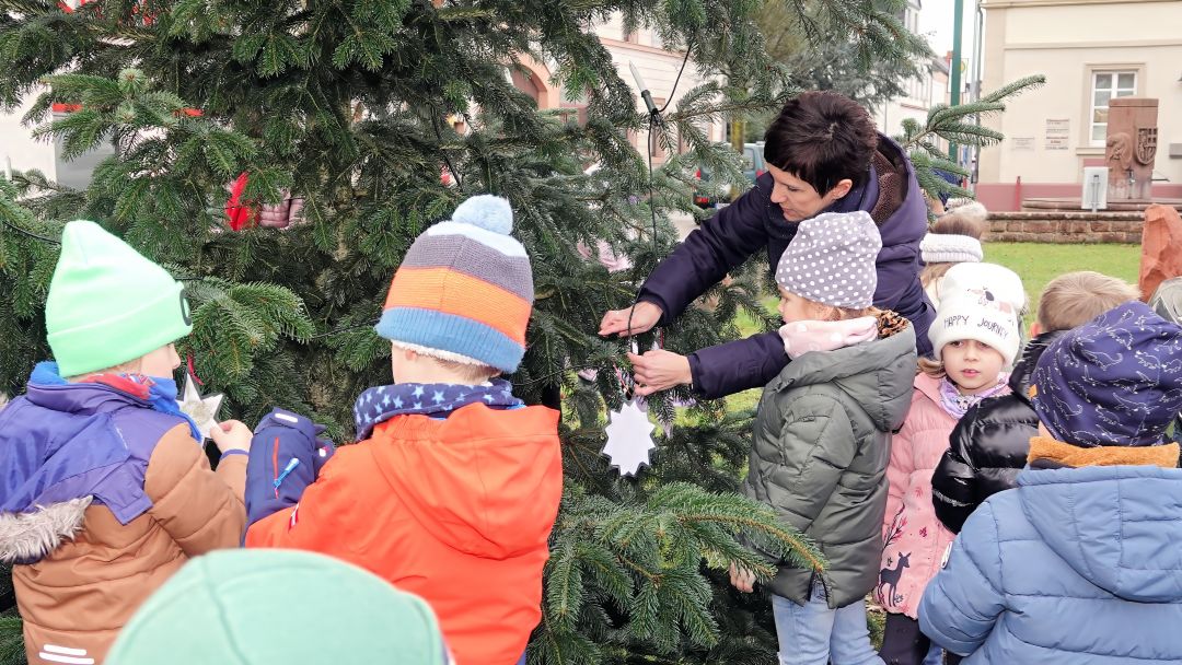 In allen Ortsteilen stehen wieder prächtige Weihnachtsbäume – ermöglicht durch zahlreiche Spenden und das Engagement vieler Helferinnen und Helfer. Besonders schön: Die Kinder der Kita „Villa Kunterbunt“ schmückten die Bäume mit selbstgebasteltem Weihnachtsschmuck.