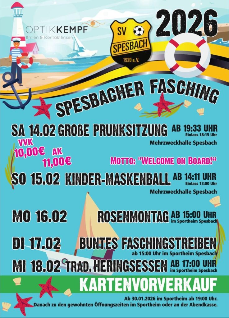 Der Vorverkauf start am 30.01 ab 19:00 im Sportheim.
