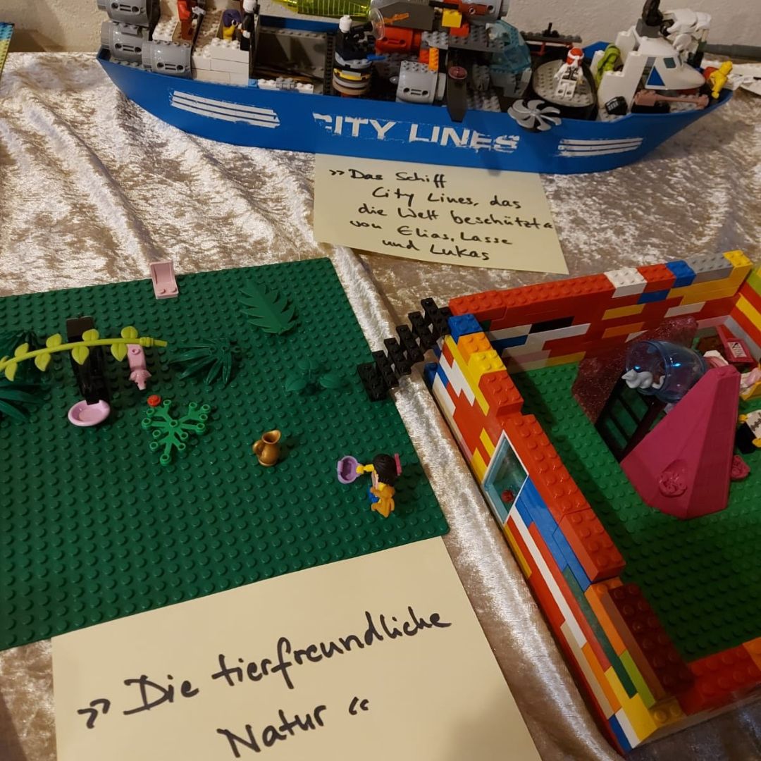 Gott ist ein riesen LEGO-Fan. Ja, wirklich! Mit diesen Worten beginnt die LEGO-Schöpfungsgeschichte denen 25 Kinder im Alter von 6 bis 10 Jahren fasziniert lauschen. Sie sitzen im Halbkreis in der bunt geschmückten protestantischen Kirche in Hütschenhausen. Gespannt hören sie Pfarrer Stefan Mendling zu, der diese zur Einstimmung vorträgt. Während er das Werden der Schöpfung dazu mit LEGO-Steinen nachstellt ist die Vorfreude der Kinder mit Händen zu greifen. 400 Kilo LEGO warten auf sie um ihre eigenen Welten zu gestalten. Als Pfarrer Mendling endlich das Startsignal gibt, ist kein Halten mehr. Mehrere Kisten werden auf den mit Matten ausgelegten Boden der Kirche gelehrt und dann geht es los. Mit viel Kreativität entstehen viele bunte Welten, mal alleine, mal in Gruppen. Zwischendurch gibt es in der Sakristei kleine Snacks zur Stärkung. Nach knapp drei Stunden Bauzeit werden die fertigen Meisterwerke in einem von Pfarrer Mendling und Lektor Christoph Frei gestalteten Gottesdienst den Eltern vorgestellt. Dabei kommen auch die Kinder zu Wort und erklären was sie sich beim Bauen gedacht haben. Es ist faszinierend zu sehen, wie viele Gedanken sich bereits die Jüngsten um ihre Zukunft und die Welt machen. Von waffenstarrenden Kriegsschiffen und Fluggefährten, die vor Kriegen schützen sollen, über nachhaltige Häuser bis hin zu bunten Traumparadiesen ist alles vertreten. Besonders schön sind auch die vielen Details, die in den Welten zu finden sind. Da gibt es die Wunschpalme, die jeden Wunsch erfüllt, einen Fahrstuhl aus der Unterwelt, ein Teller Spaghetti auf dem Küchentisch und, und, und… Viele Kinder haben sich auch selbst in Ihrer Welt verewigt. Mit einem Erinnerungsfoto von ihrem Werk und sich selbst werden die Kinder dann von Herrn Frei verabschiedet. Überall zufriedene und glückliche Gesichter, sowohl bei den Kindern als auch bei den Eltern. „Macht ihr das mal wieder?“ wird gefragt.