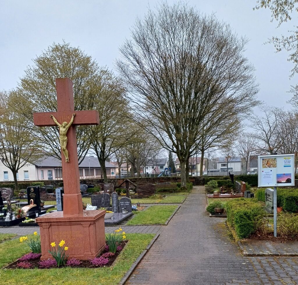 Auch im Ortsteil Spesbach wurde eine Idee aus dem Friedhofsworkshop verwirklicht. Dort entstand ein Trauerschaukasten, der den Friedhof bewusst als Ort der Begegnung und des Austauschs stärkt. Die Initiative geht auf Wolfgang Fauth und Karl-Eckhart Hauser zurück, die mit ausgewählten Worten und Bildern der Hoffnung neue Zugänge zum Thema Trauer eröffnen möchten. Mit großem Engagement kümmern sie sich um die regelmäßige Gestaltung und Pflege des Schaukastens. Gleichzeitig informieren sie über verschiedene Angebote rund um das Thema Trauer in der Region und stehen Interessierten gerne als Ansprechpartner zur Verfügung.